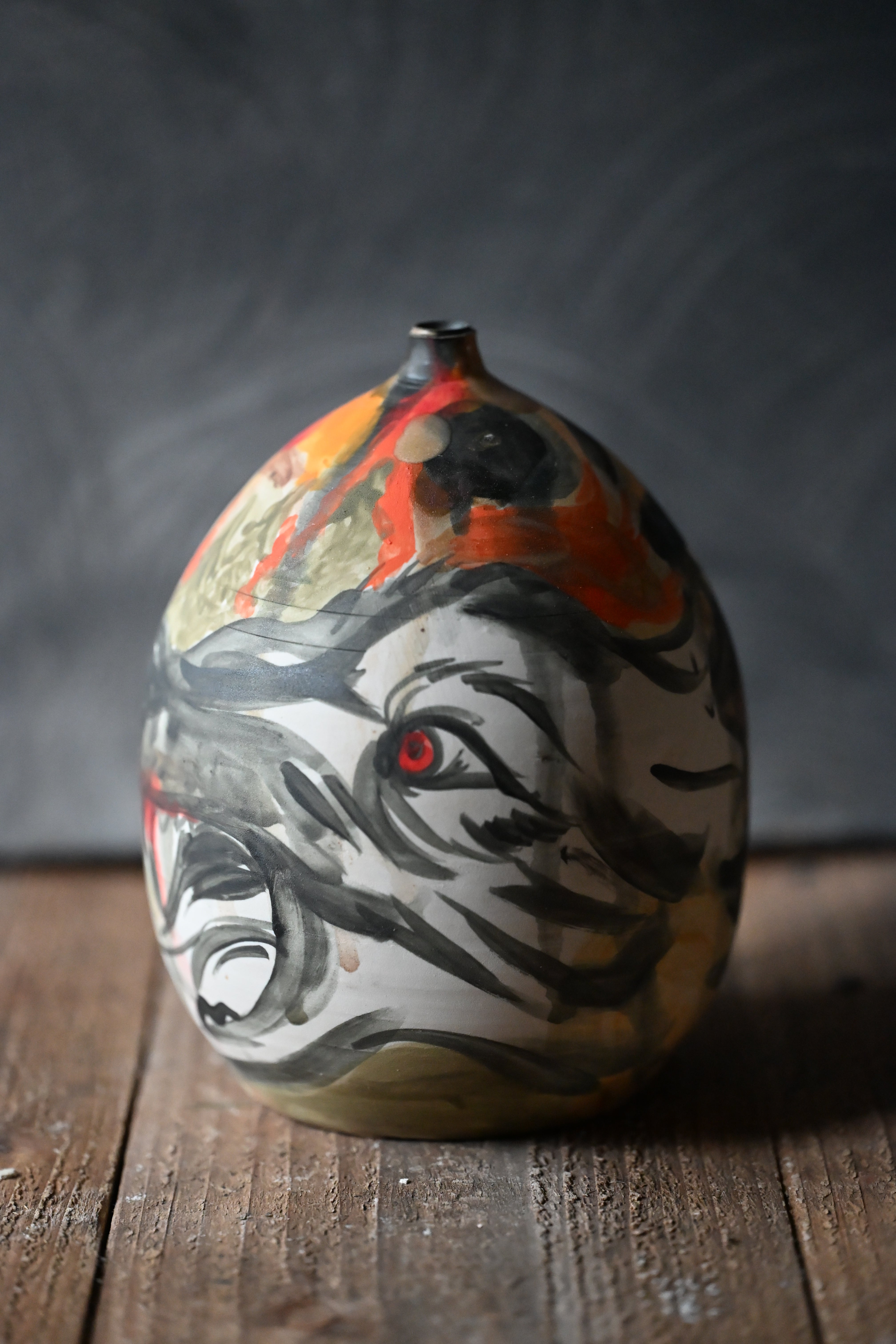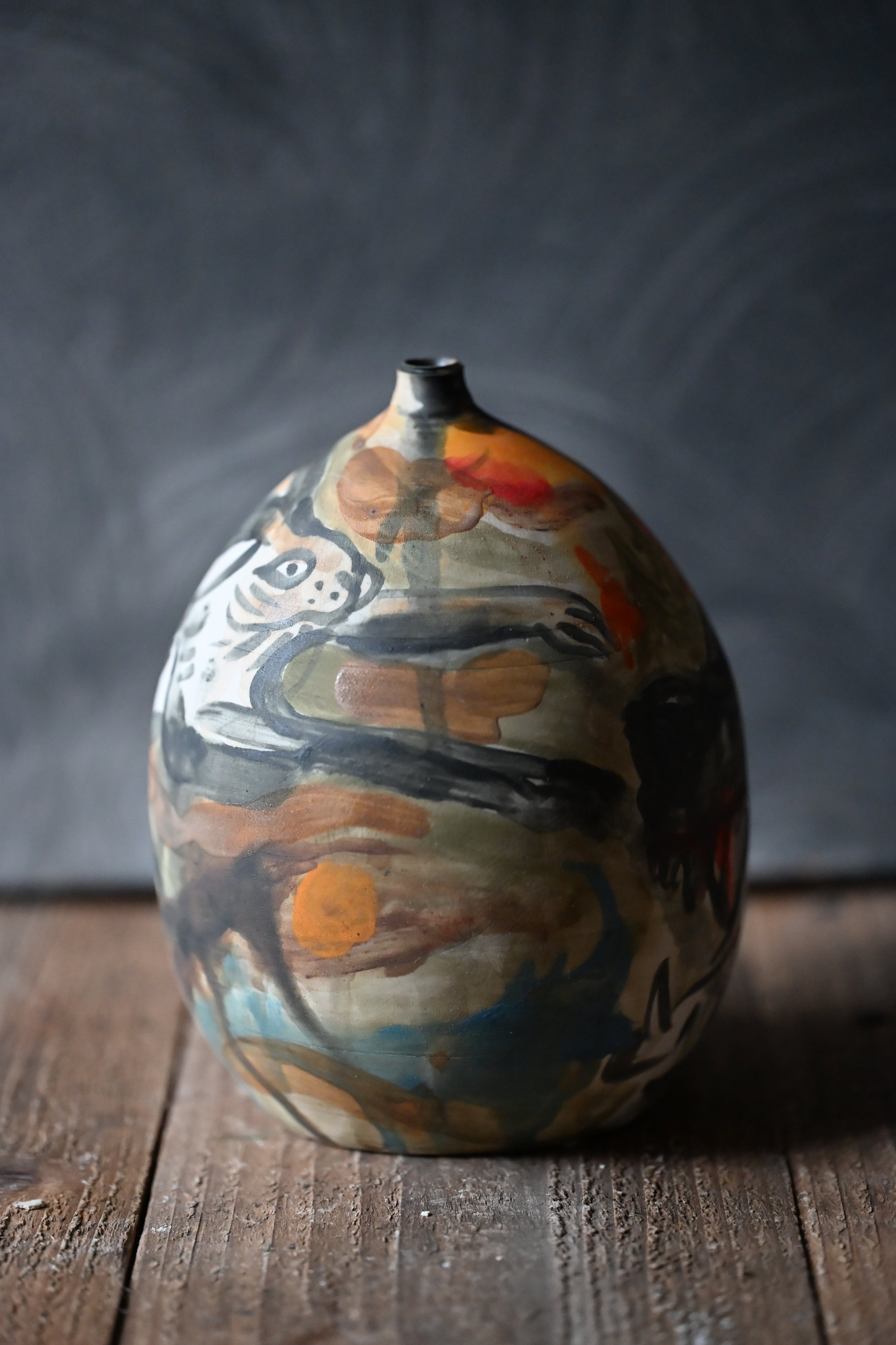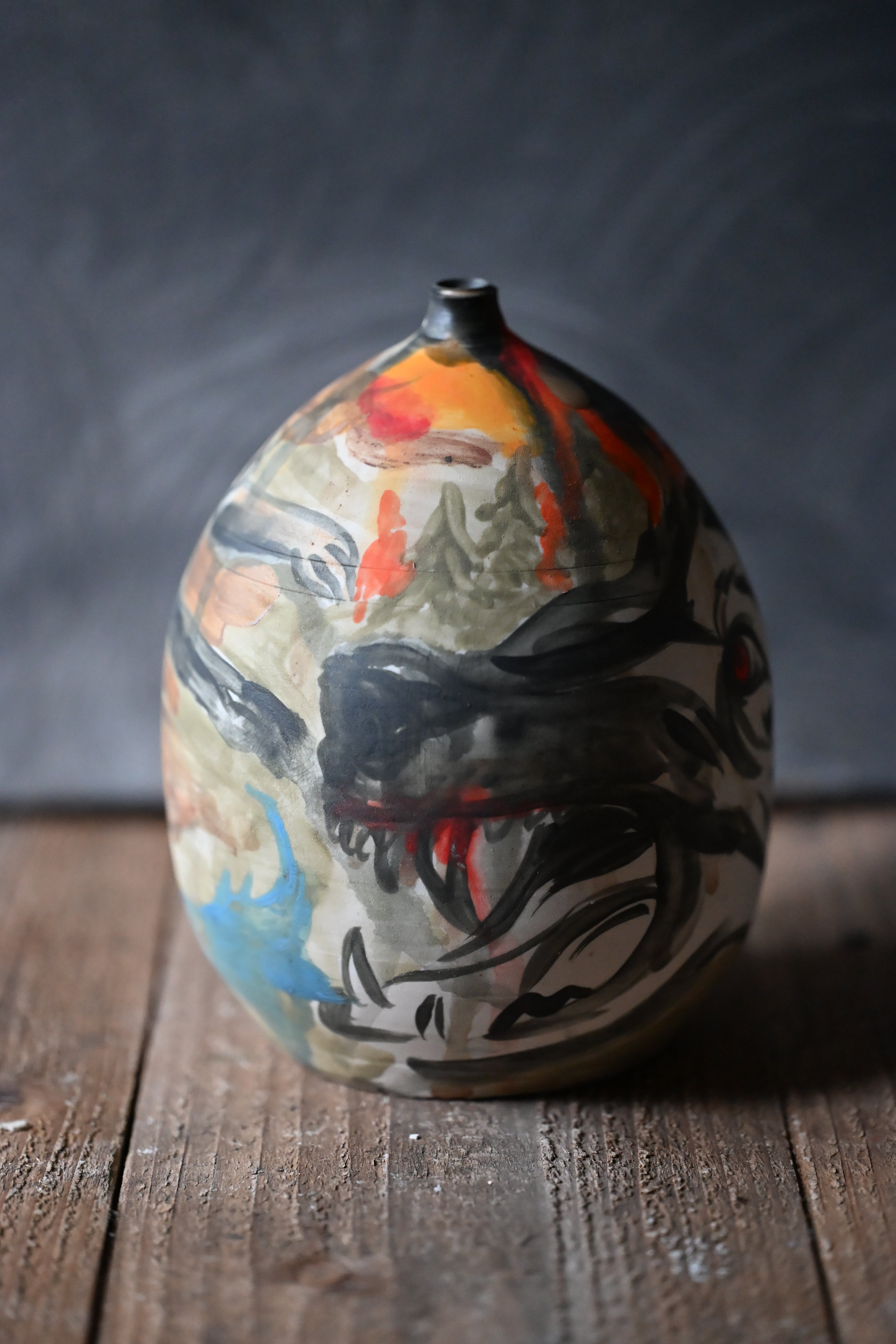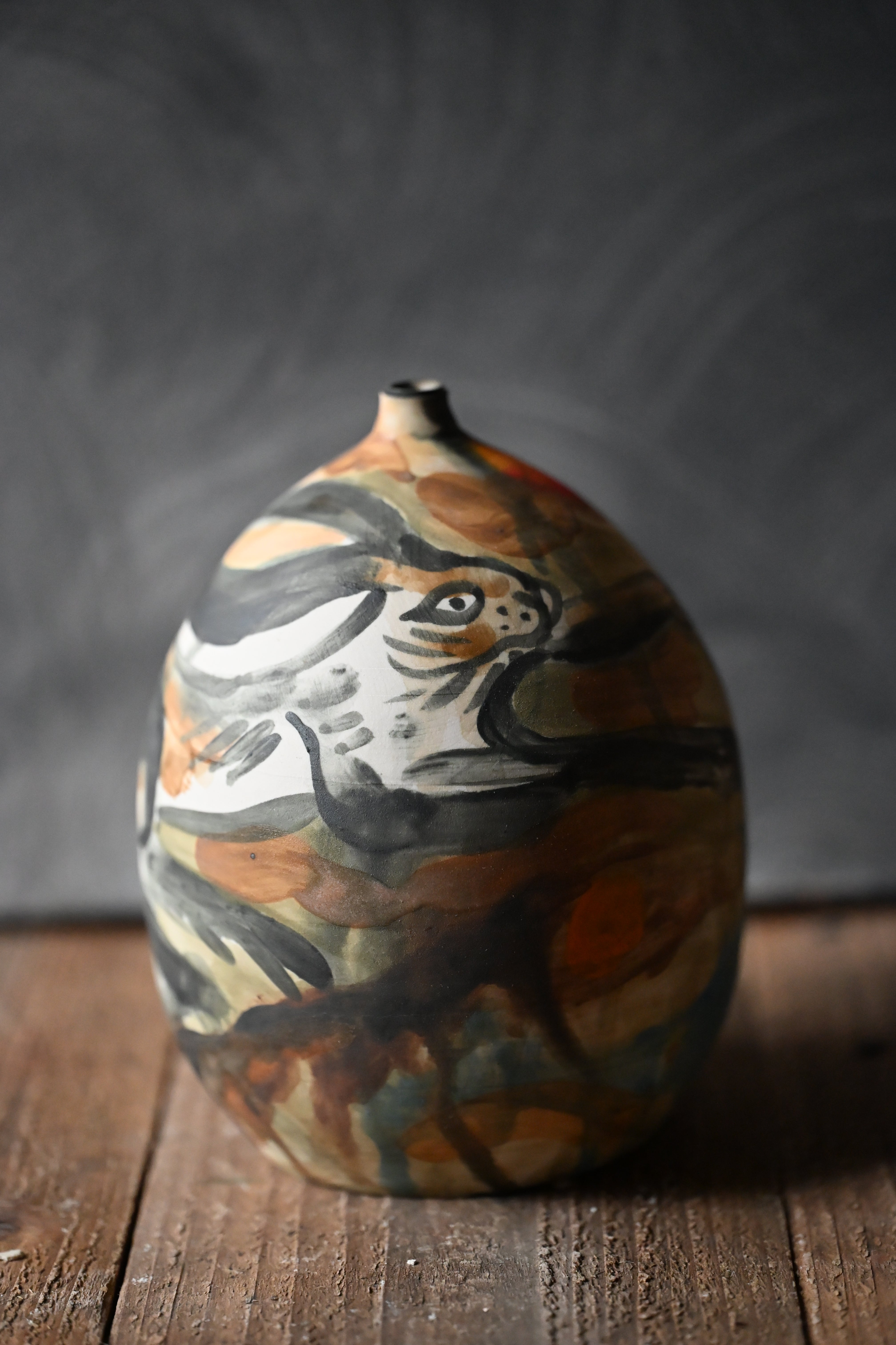 Meant to be read like a scroll, one section at a time, the story of coyote chasing rabbit is there to view in the round. Part of a series of works focusing on Trickster characters throughout folktales of various cultures.